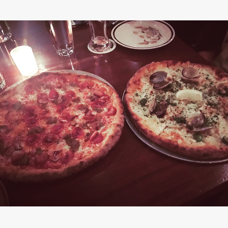 Luckily, I was with one of my more adventurous friends, Kelly, who is always up for helping me try new foods that I would have probably avoided. Deciding we wanted to try out two types, we decided on a more “traditional” type, the YOLO,house red sauce, mozzarella, fennel sausage, Nueske’s bacon, natural casing pepperoni, and a more adventurous type, that Kelly was super excited to try, The Pepe, made with fresh clams, Parmigiano Reggiano, mozzarella, crème fraîche, garlic, shallot, parsley, chili flake, and lemon.