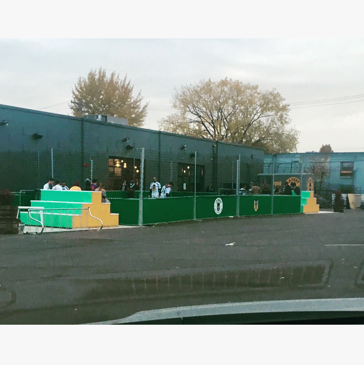 The really cool part about this brewery that sets it apart is the small soccer field in their parking lot where they have a 3-on-3 fútbol league as well as broomball and the ability to rent out the space, much like they have the ability to rent out different parts of their brewery in general for private parties. The place is HUGE and the vibrant color and decorations are an added delight.