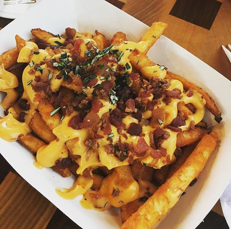 Butcher Salt Loaded Fries: fries with double cheese, chipotle cheese sauce, bacon, and chipotle sour cream