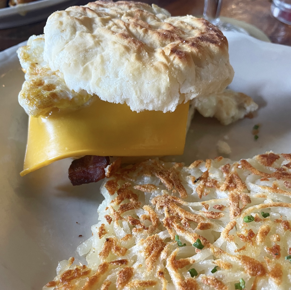 McHope Sandwich: Biscuit, bacon, cheddar cheese, fried egg, seasoned hash browns