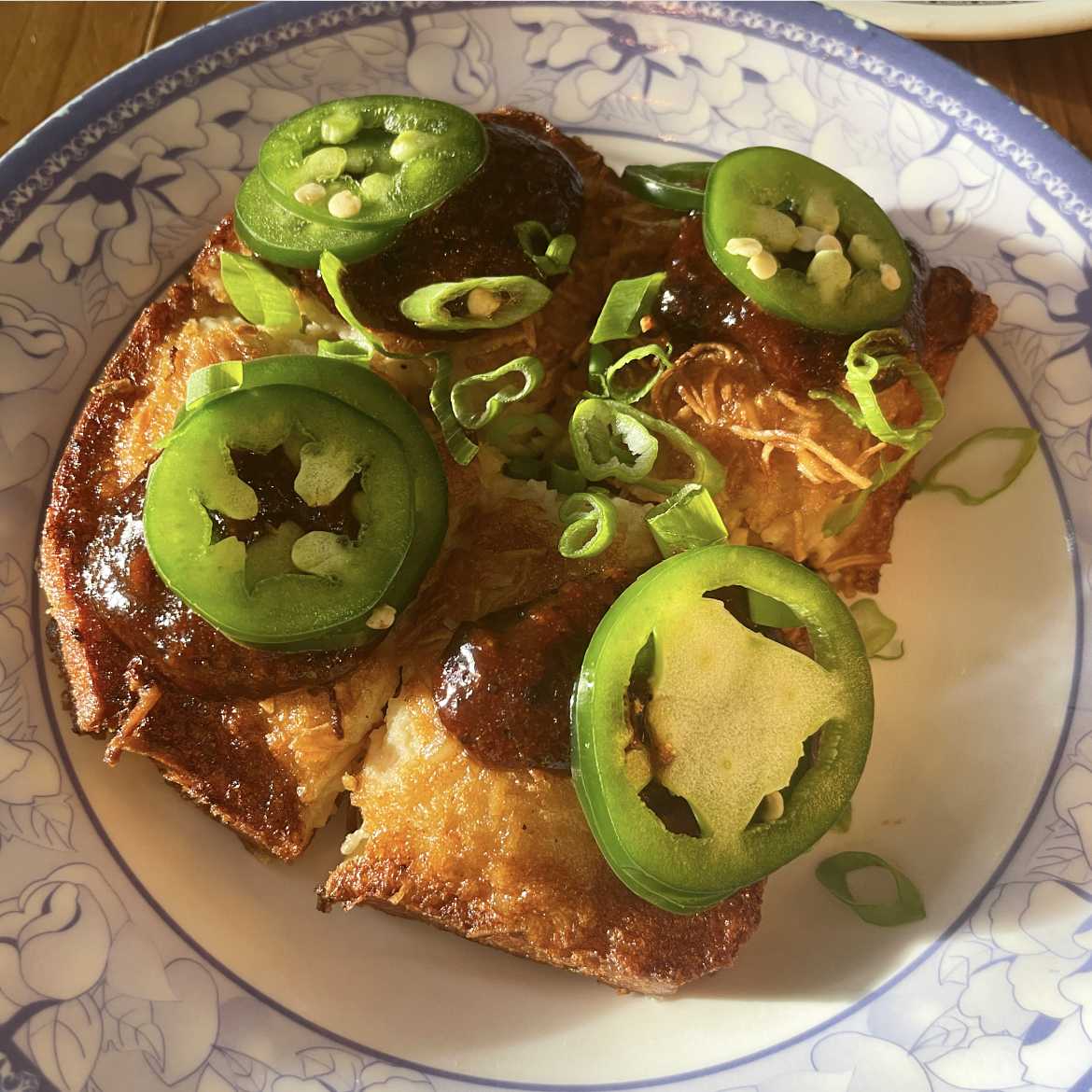 I’m not a huge fan of jalapeños, but this toast was really good and not too spicy. The mix of flavors was really unique.