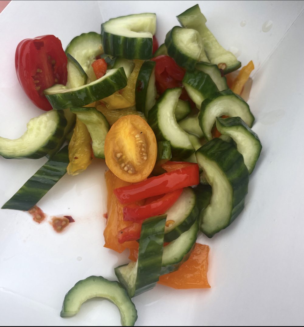 I’m not a coleslaw person, but I was excited to see the cucumber salad on the menu. I’d gladly eat that daily. My parents both got the coleslaw, though, and they liked it!