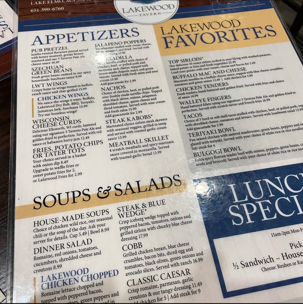 We were itching to try somewhere new, but were starving so didn’t really want to make the drive into the cities so it was the perfect opportunity to finally check out the new Lakewood Tavern in Lake Elmo!