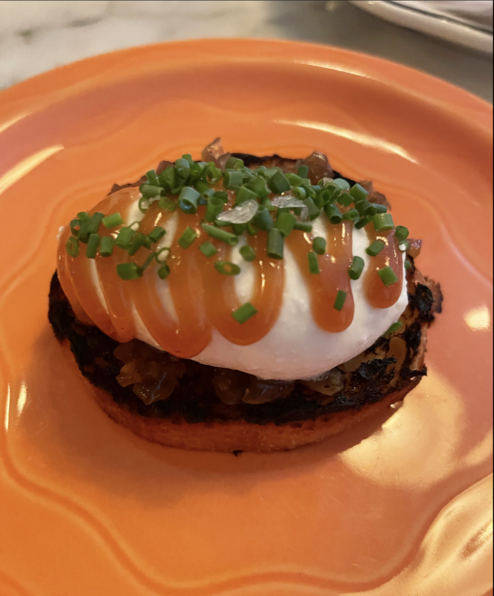 They have a pintxos section on their menu which means “finger foods” in the Basque Country of Spain (thank you, Google 😂). I had my heart set on the bacon wrapped dates, but after seeing that it was only $4, we put two and two together that it was a pretty small portion and also got the goat cheese.