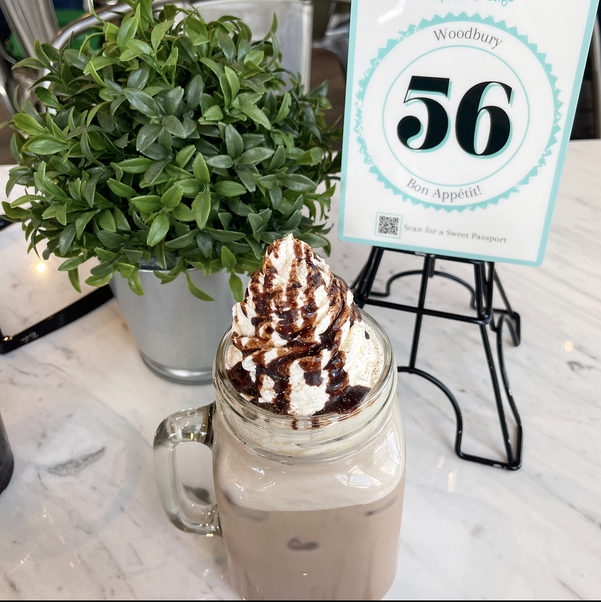 Iced Mayan Chocolate: With whipped cream and chocolate drizzle