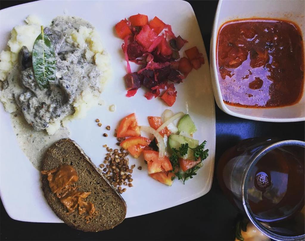 - Russia: Beef stroganoff, eggplant paste, buckwheat, borscht, so many beets & strawberry comput