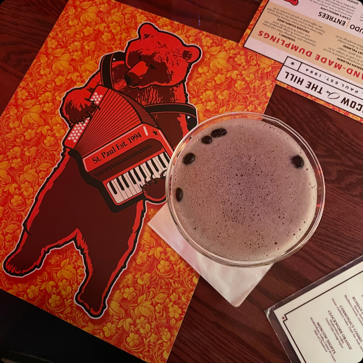 As a vodka enthusiast, I’m embarrassed to say this is only my second time visiting Moscow on the Hill in Saint Paul 😬. Lately husband and I have been stuck in a bit of a rut so when he told me it was my turn to pick date night I put together a list of places I was long overdue for a visit and when he saw Moscow on the Hill and he realized he could get some quality “beef strogo” it was an immediate yes for him.
