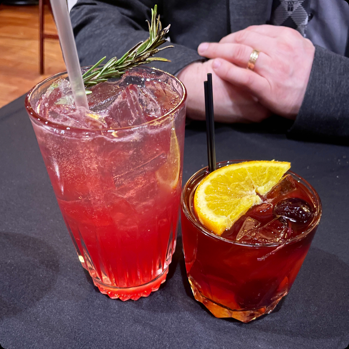 A Dozen Roses: Tito’s vodka, pomegranate juice, fresh lemon juice, rosemary simple syrup, charred rosemary sprig