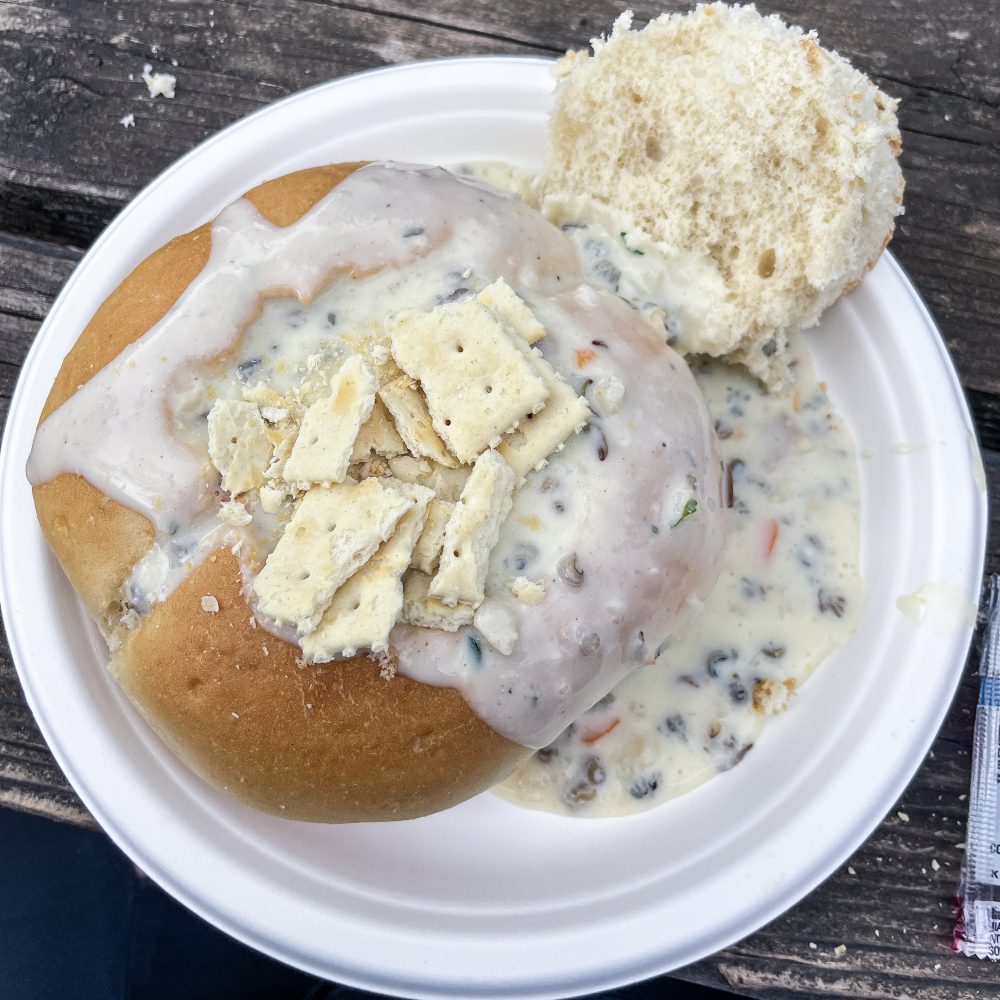 I will say that the breadbowls are dug deep, but they’re not really wide inside so it is a lot of bread.