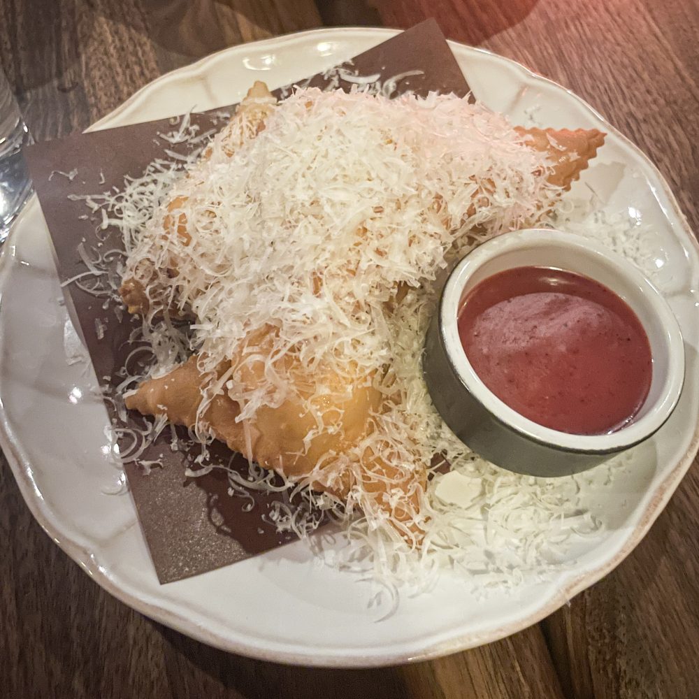 These were basically like a cream cheese wonton. Mine had quite a bit of the pecorino cheese on top of it, which did make it a bit tangier.