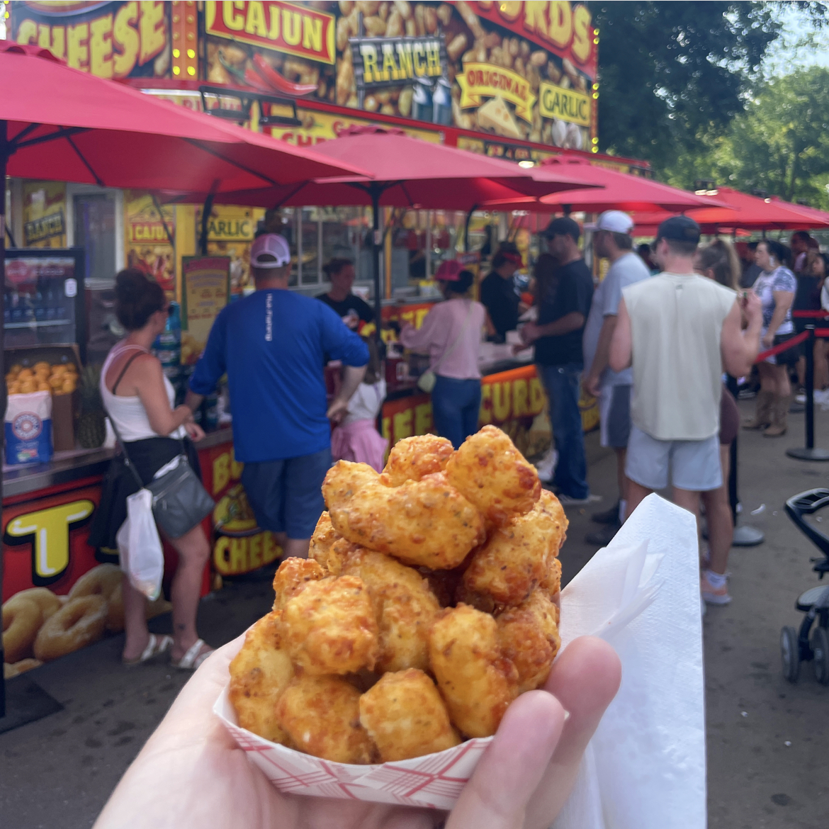 Last year, I didn’t like the deep fried ranch, but I wanted to give it another try. Especially since the line was only a third of its usual size and I figured their staff may not be going as fast. Last year when we got these there was nothing inside them. It was like the ranch had completely melted and absorbed into the breading. This year, we actually had ranch chunks inside and I feel like I got a true taste. I still wouldn’t put them as one of my favorites, but they’re definitely a very Minnesotan experience.