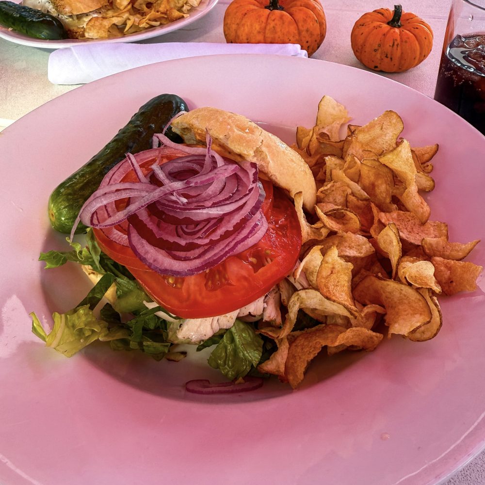 I had the turkey focaccia and I enjoyed every bite. The chips were also fried perfectly, too. Husband said it best, “I was annoyed it was chips instead of fries, but these are actually really good.” We did debate also getting the french fries appetizer that comes with three sauces, but neither of us felt like we were hungry enough so we passed. I’ll definitely get it at one point, though – red pepper aioli, cajun mayo & ketchup – yum (see what I did there?).