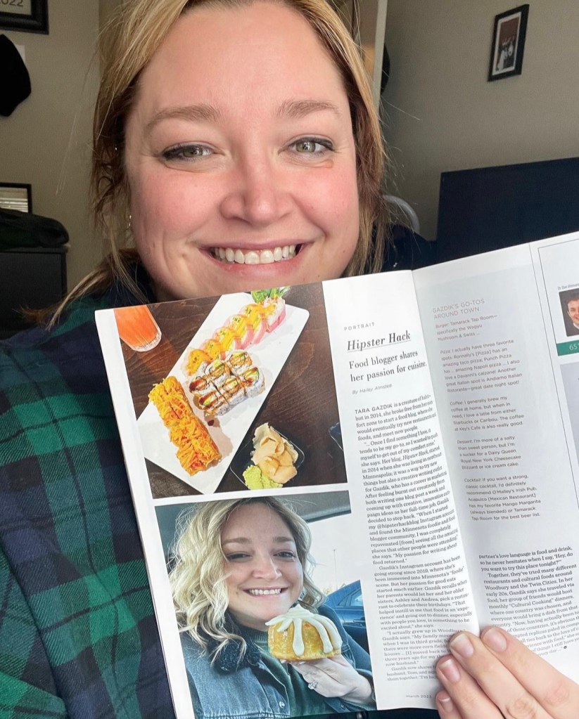 “When I started my @hipsterhackblog Instagram account and found the Minnesota foodie and food blogger community, I was completely rejuvenated [from] seeing all the amazing places that other people were attending,” she says. “My passion for writing about food returned.”